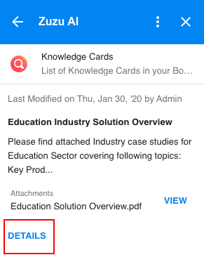 This will help your Sales, Support or Marketing team to explore Knowledge Cards with ease.