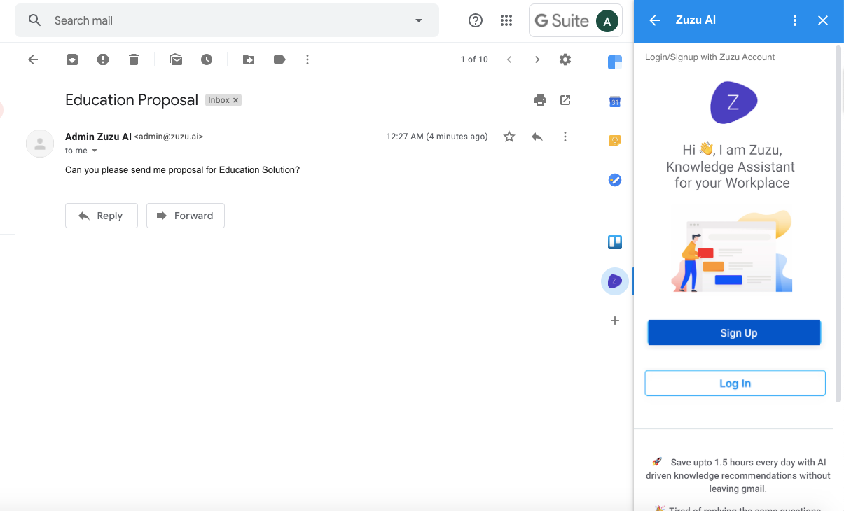 You will be asked to login-signup if you are not logged-in to the Zuzu AI Gmail Plugin.